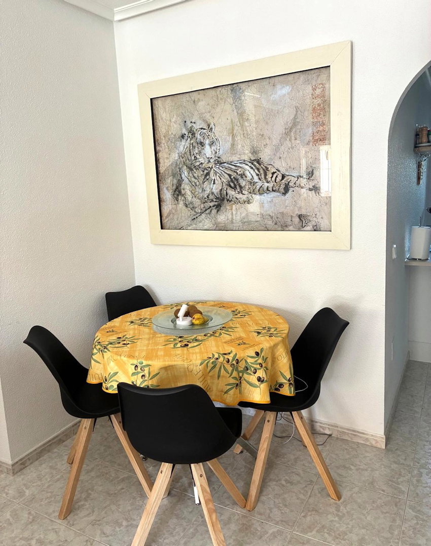 Situated in Playa Flamenca area. Ground floor apartment with garden. English TV. Communal Swimming pool. 15 mins walk to sea, 8 mins walk to La Zenia Boulevard. Bars and restaurants near plus supermarkets. Golf courses. Have a game of padel while you are here?